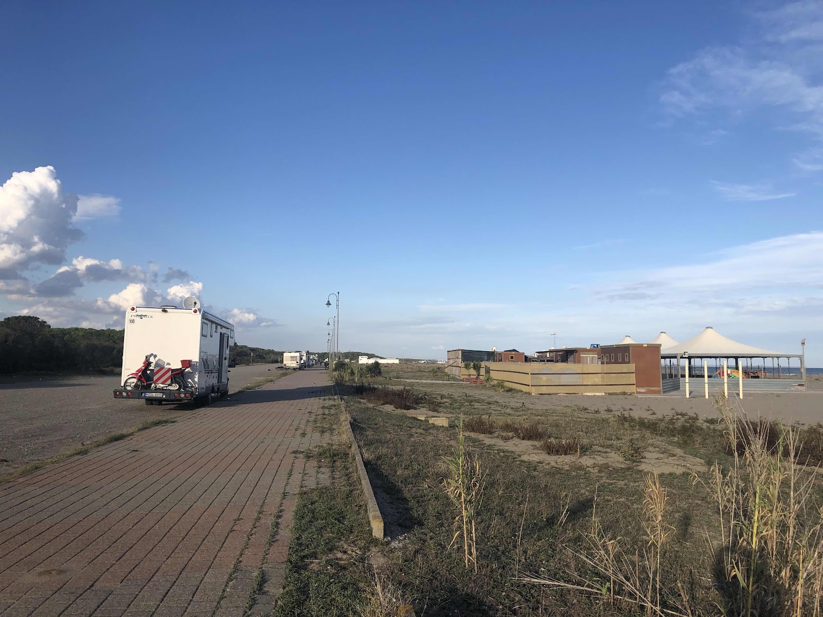 Der Strand ist darüberhinaus ein Traum: 100 Meter tief und kilometerlang. Die ansässigen Strandbars sind bereits eingewintert und der Platz ist weiträumig. Wir suchen uns ein Eckchen aus und bleiben.