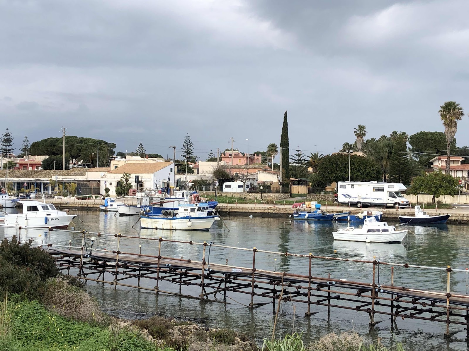 Das Dörfchen ist verschlafen, die vertäuten Fischerboote auch, im Vergleich zu Brucoli liegt eine herrliche Stille über dem Hafen. Wir wissen aus Erfahrung, dass morgens um vier Uhr möglicherweise ein paar der Fischer auslaufen, aber das stört uns nicht weiter. Wir bleiben.
