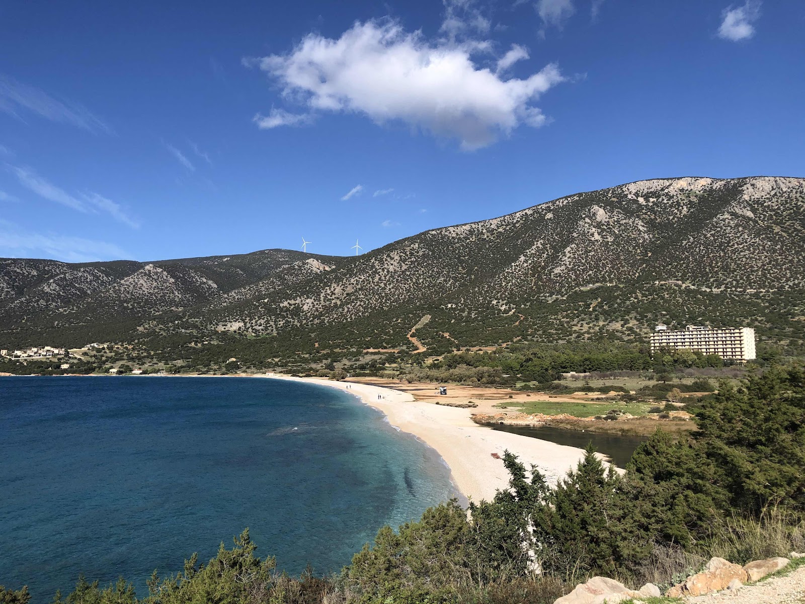 Heute laufen wir um die große Bucht herum, gegenüber unseres Stellplatzes führt ein Weg zum nächsten Kap, hinter welchem die nächste Ortschaft Kilada liegt. So weit gehen wir allerdings nicht.